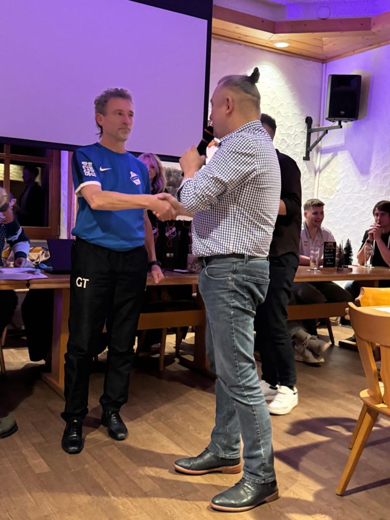 Desweiteren wurde der scheidende Jugendleiter gebührend verabschiedet. Mit einer kleiner Diashow alter Bildaufnahmen, die zum einen oder anderen Lacher führten, wurde Gerhard Thalhofer als Jugendleiter verabschiedet. Ihm galt der Dank für seine bisherige Arbeit. Zudem waren eine Vielzahl von Spielern anwesend, denen er als Trainer vor vielen Jahren das Fußballspielen beigebracht hat. Es gab sogar eine Audionachricht von einem Spieler, der beruflich verhindert war und sich auf diesem Weg von seinem ehemaligen Trainer mit einer emotionalen Nachricht verabschiedete.